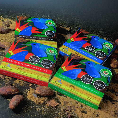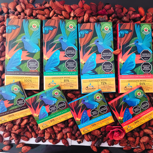 De la tierra de la libertad, con la nobleza de nuestros ancestros te heredamos este delicioso chocolate elaborado con cacao fino de la zona occidental, región de las esmeraldas que recoge nuestros misterios y leyendas, y te permitirá viajar a través de sus aromas a caramelo y nuez para descubrir lo que hay detrás de él: esperanza, reconciliación y paz.
